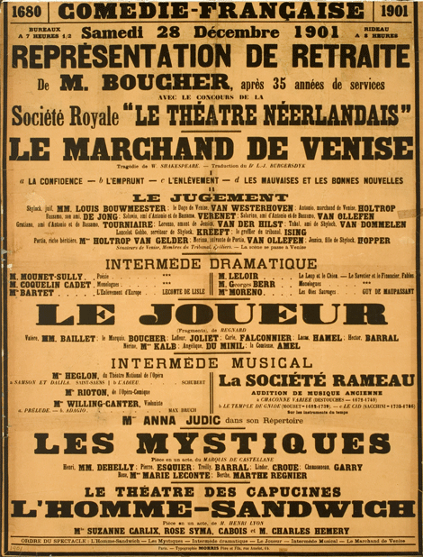 De legendarische Louis Bouwmeester zal voor het eerst in 1880 de rol van Shylock vervullen in de uitvoering van de door Burgersdijk vertaalde Koopman van Venetie. De rol van Shylock zou Louis Bouwmeesters levenswerk worden, in 44 jaar zou hij de rol meer dan tweeduizend keer spelen, tot in Londen, Wenen en Stratford aan toe.