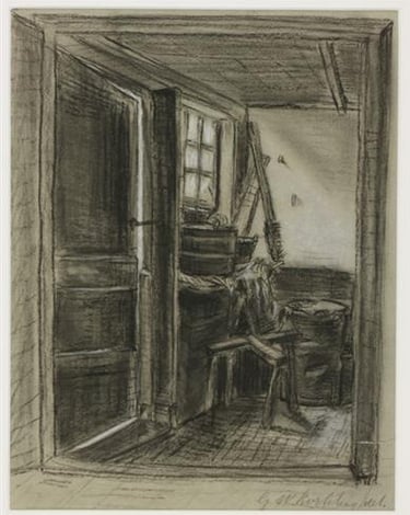Tekening van schildersbedrijf aan de Smedenstraat, van Gerhard (de kleinzoon) . HM Deventer