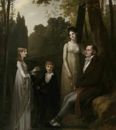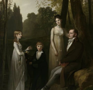 Schilderij van Rutger Jan, zijn vrouw Catharina Nahuys, dochter Catharina (hier begraven) en zoon Gerrit Schimmelpenninck. (Door Pierre-Paul Prud'hon, Collectie Rijksmuseum.